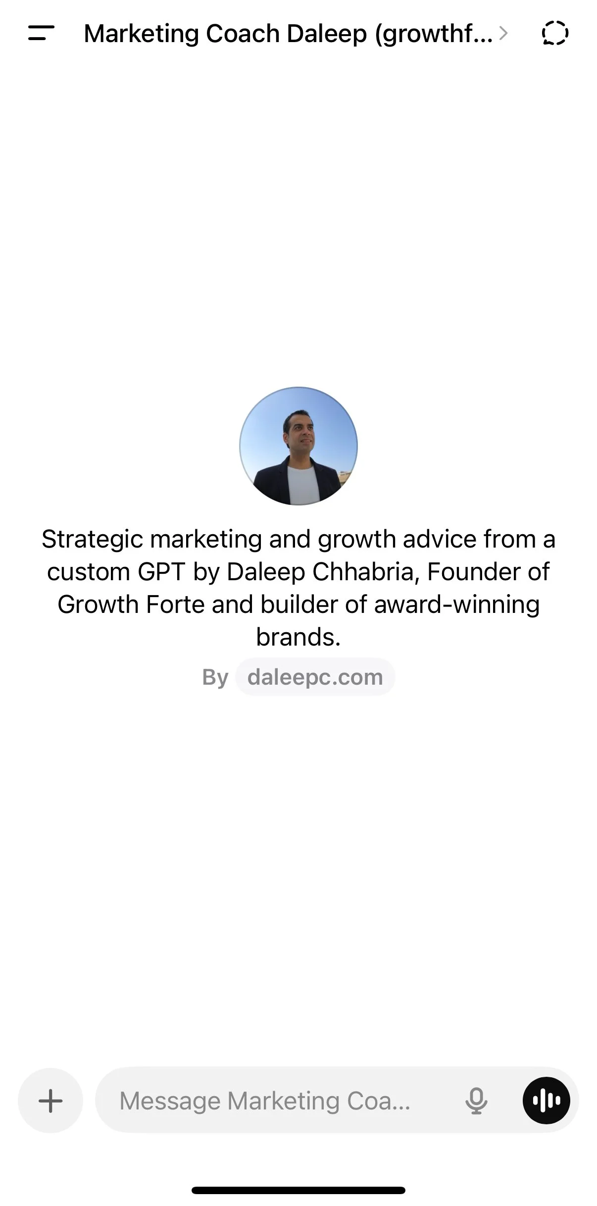 Custom GPT specially trained by Daleep Chhabria, founder of Growth Forte, marketing strategist, fractional-CMO, coach, and builder of award-winning brands.